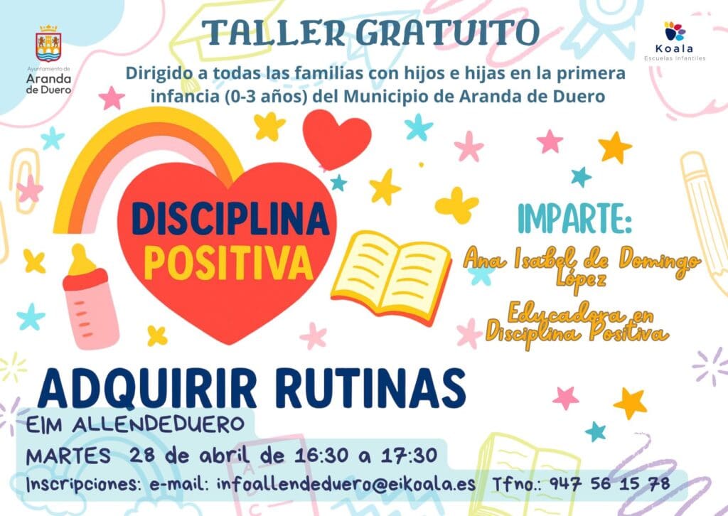 Disciplina positiva: adquisición de rutinas es un taller presencial gratuito pensado para ayudar a madres y padres en la educación de sus peques de 0 a 3 años. Una sesión práctica para entender mejor la creación de hábitos y rutinas en la primera infancia, y para llevarse herramientas útiles de comunicación asertiva desde el enfoque de la Disciplina Positiva.
